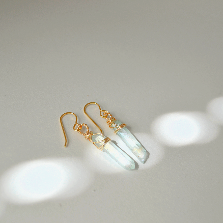 Handmade earrings made with quartz and gold plated earring hooks