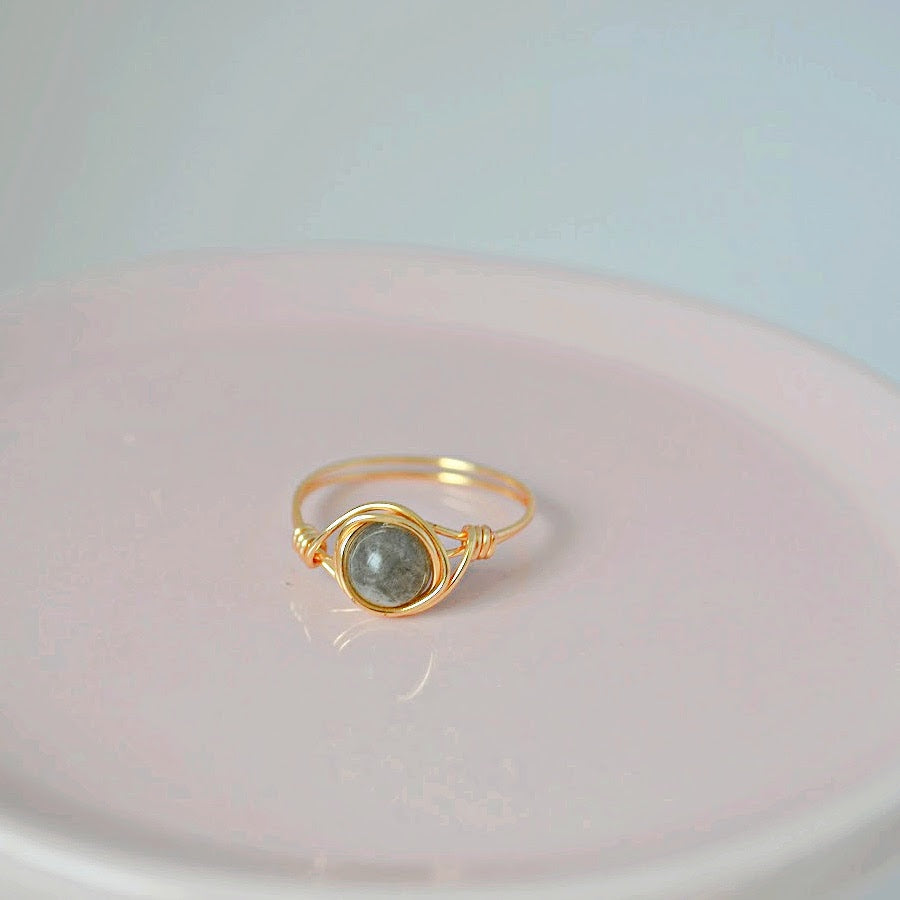 Labradorite gemstone bead wrapped with gold plated anti tarnish wire