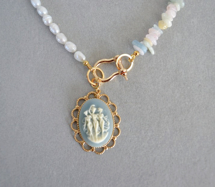 Filigree Dancing Fairies Cameo Charm • Halfable