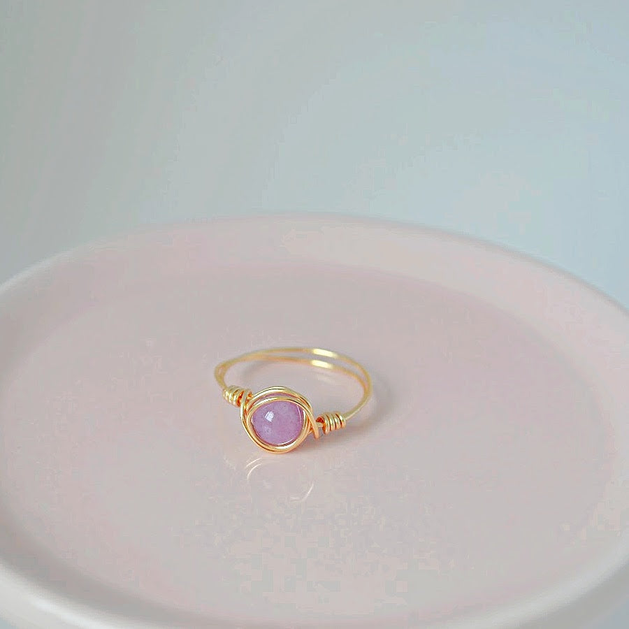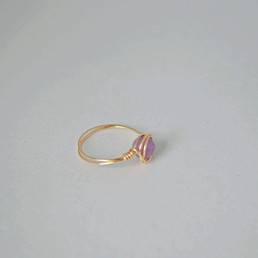 Purple Quartz gemstone bead wrapped with gold plated anti tarnish wire